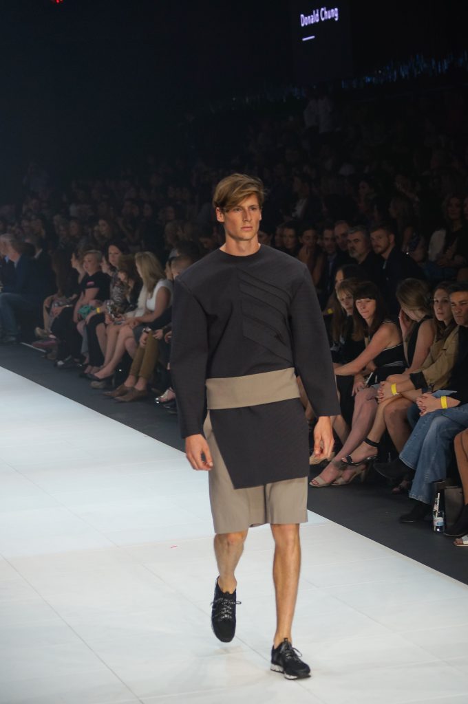 Donald Chung’s collection, influenced by the army uniforms of North Korea, was on trend in utilitarian silhouettes, epaulettes , and clean crisp lines, but pledging allegiance to fashion – not communism.