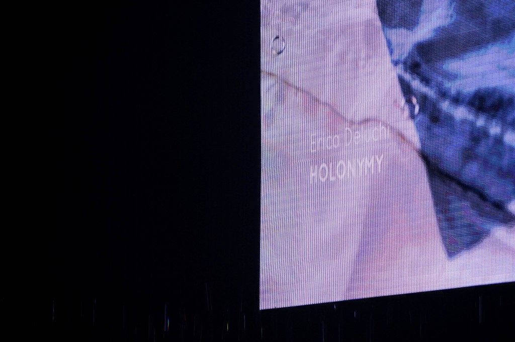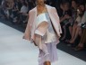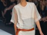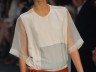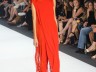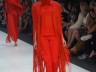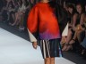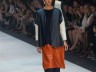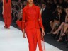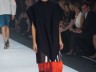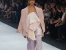 Erica Deluchi entitled her collection, Holonymy (defined as “the semantic relation that holds between a whole and its parts”), and showed oversized, minimalistic layered looks – made a bit more eye catching with splashes of reds and unexpected fabrications.