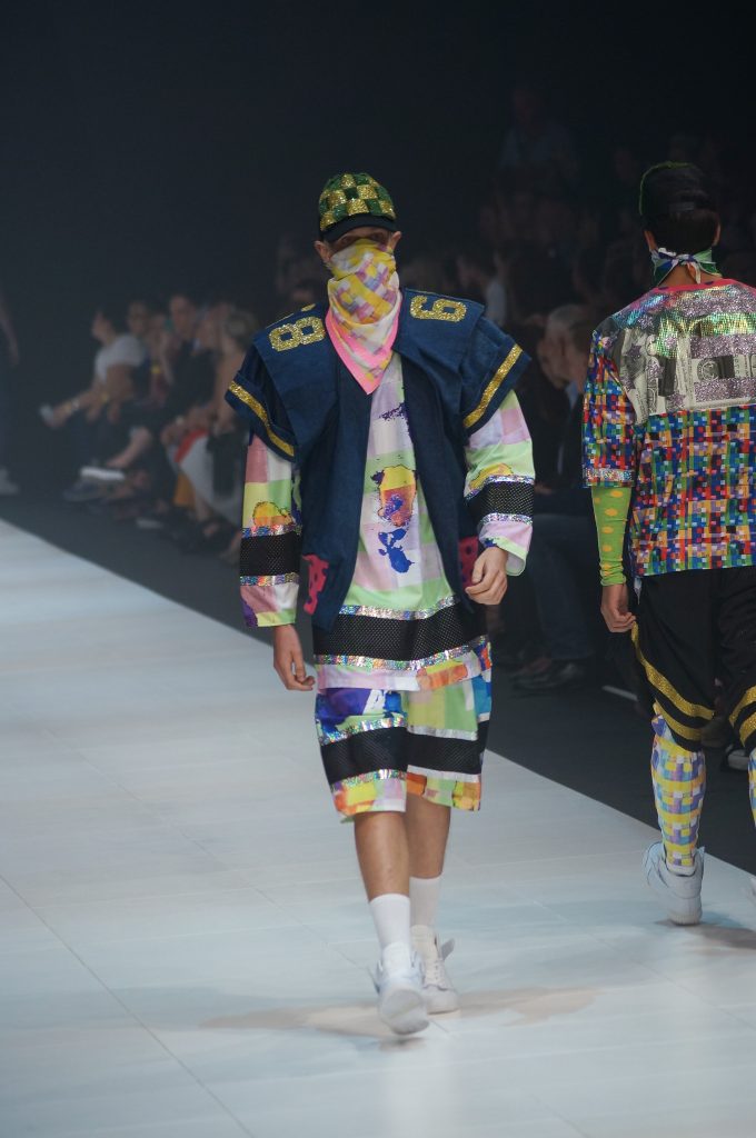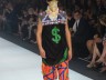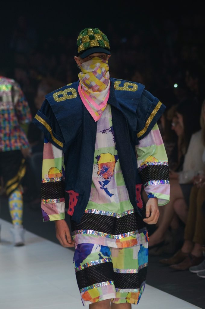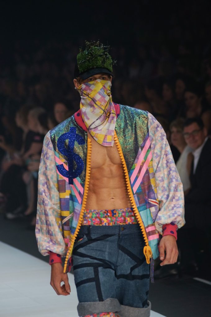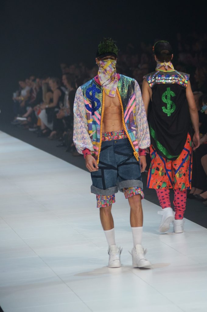 Megan McGrath and her collection, meg&n was unapologetically inspired by 90s hip-hop and rap culture. Think primary colour blocking with heavy doses of gold embellishments and chunky chains. Innovative silhouettes and clever remixes of patterns (spot the dollar bills!) added extra interest and a sense of fun.
