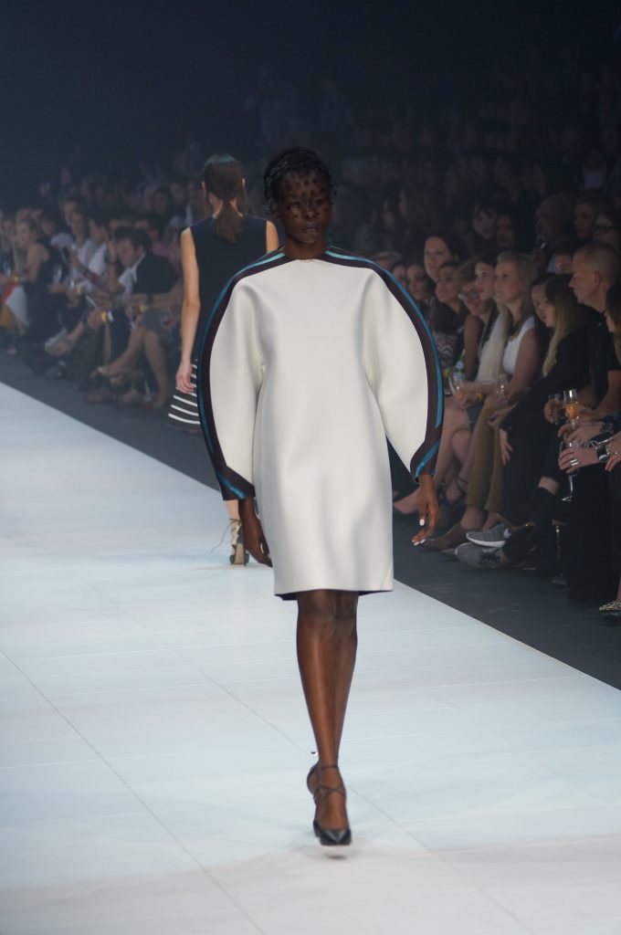 Rachael Zheng found beauty in simplicity, showing tied waist tunic dresses with details of oversize squares and circles.Easy wearing the collection was easily translated to the street, with the collection encompassing the idea of office to bar.