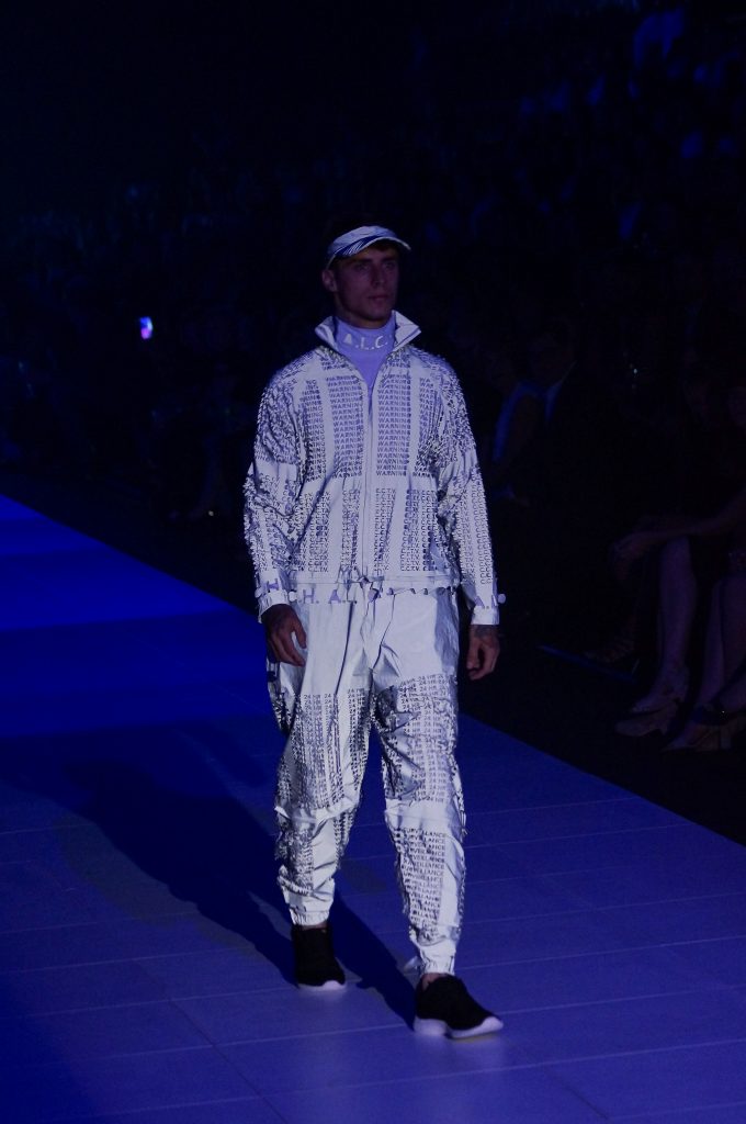 Alexandra Louise Champion Hackett and her monogrammed collection, A.L.C.H., took inspiration from surveillance and security, creating fashion out of the technology that protects it. The pieces were incredibly intricate, with one jacket completely fabricated about of label tags, and one out of security tabs.