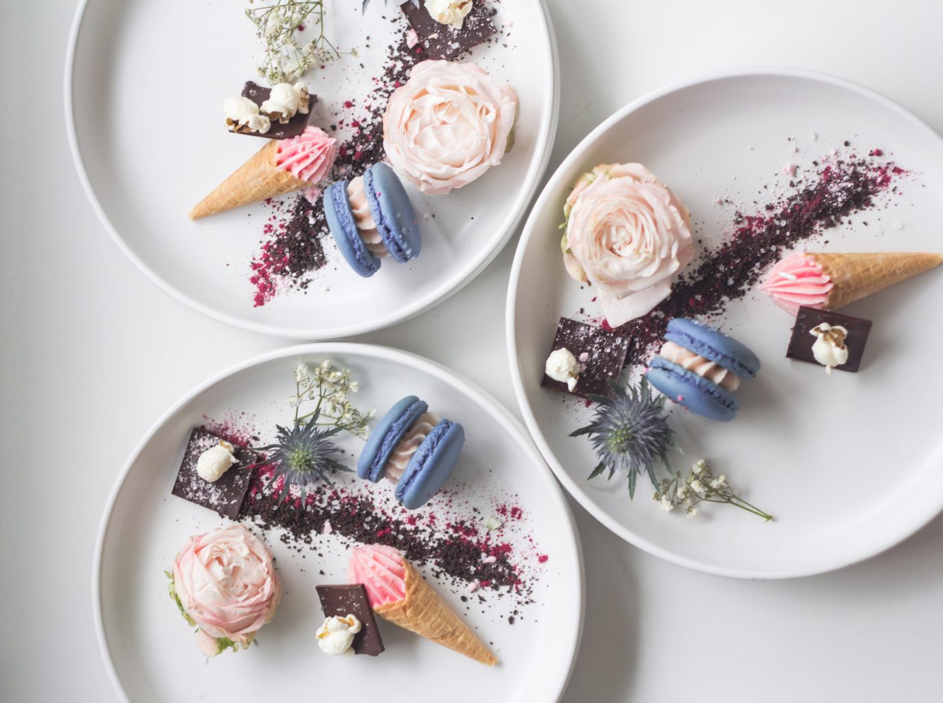 Other desserts include mini strawberry mousse cones, pink lemonade macarons, lemon and strawberry cheesecake shots, raspberry ganache, passionfruit and chocolate tarts and popcorn chocolate with Murray River pink salt flakes.