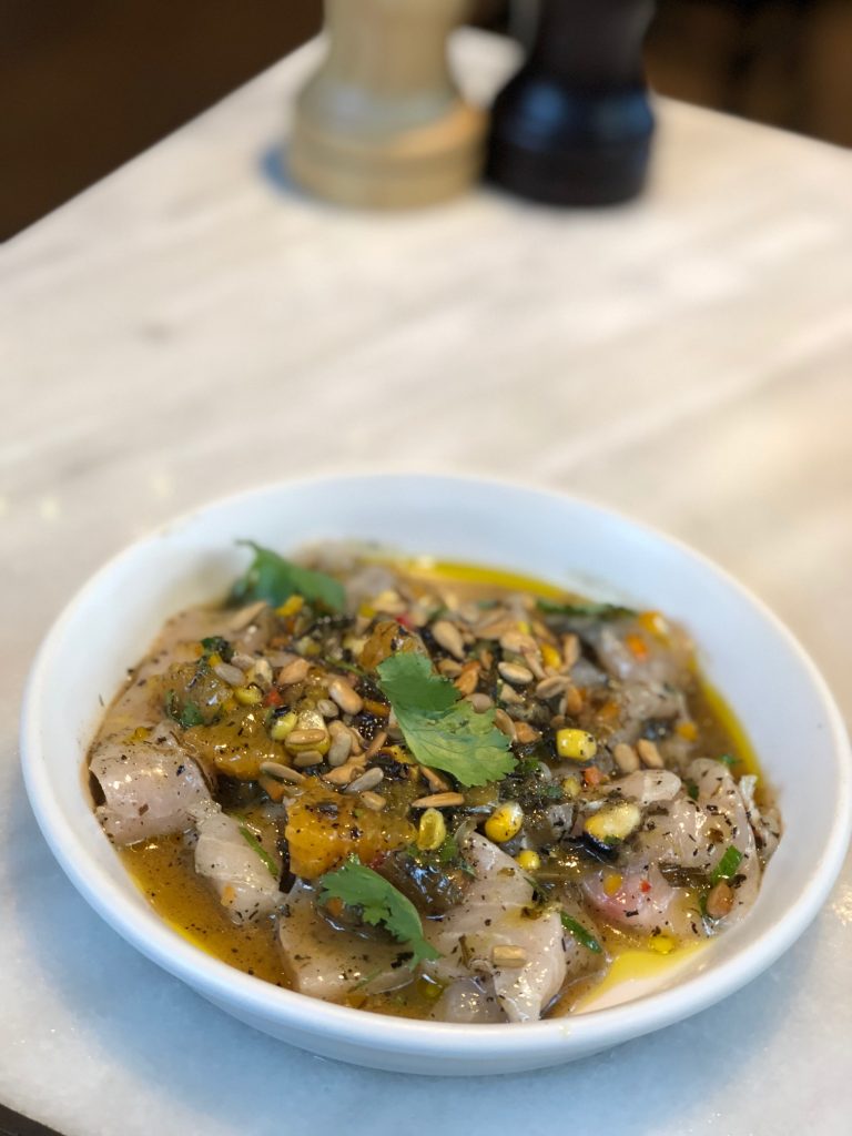 The menu features old time favourites like the must-have Empanada, filled with beef, green olive and egg, and Chorizo, but also a twist on the popular Ceviche. This one featured pickled corn, charred spring onion and tangelo with the ceviche white fish which added a delightful addition of crunch and texture to the dish but also an added sweetness that balanced the acidity.