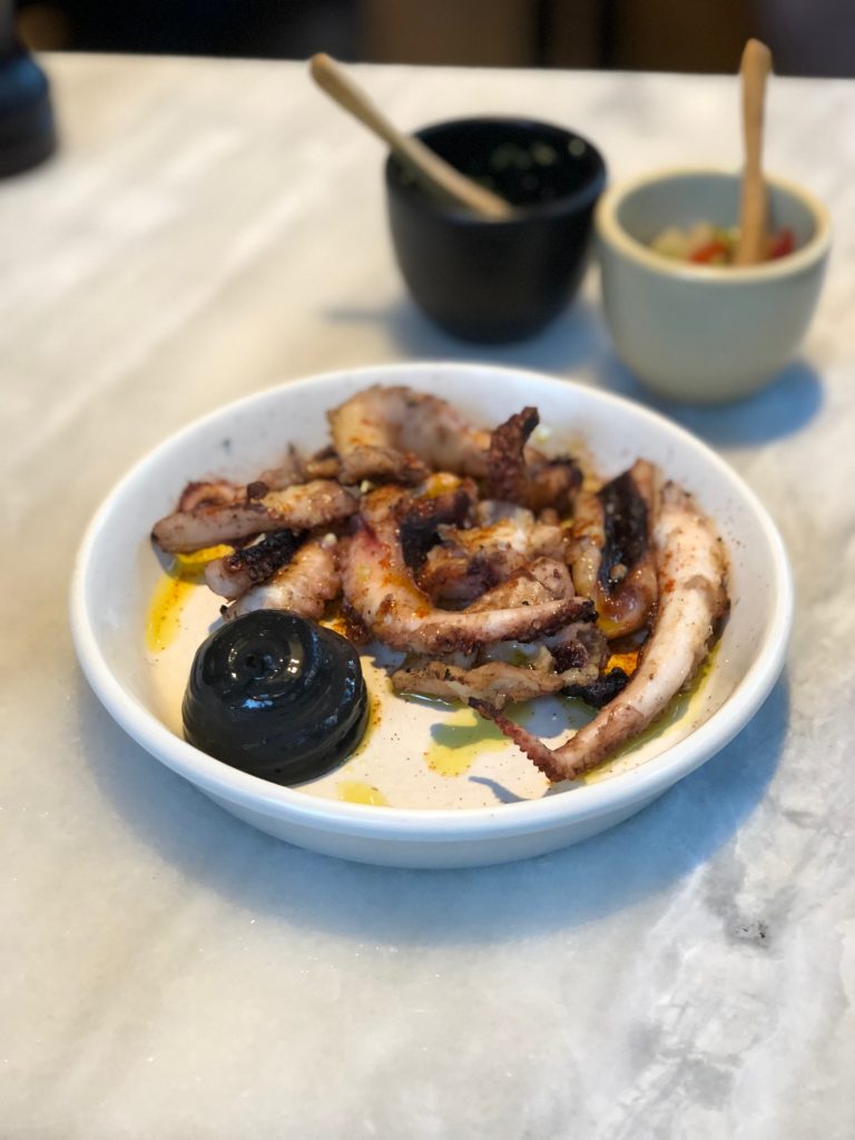 The nod to Spain comes through with pintxos-style small bites. From Salt Cod Croquetas, a beautiful combination of salty fish and potato with a crunchy outer balanced with a hit of sour cream to Pulpo, charred baby octopus, smoked paprika, squid ink cooked to perfection.