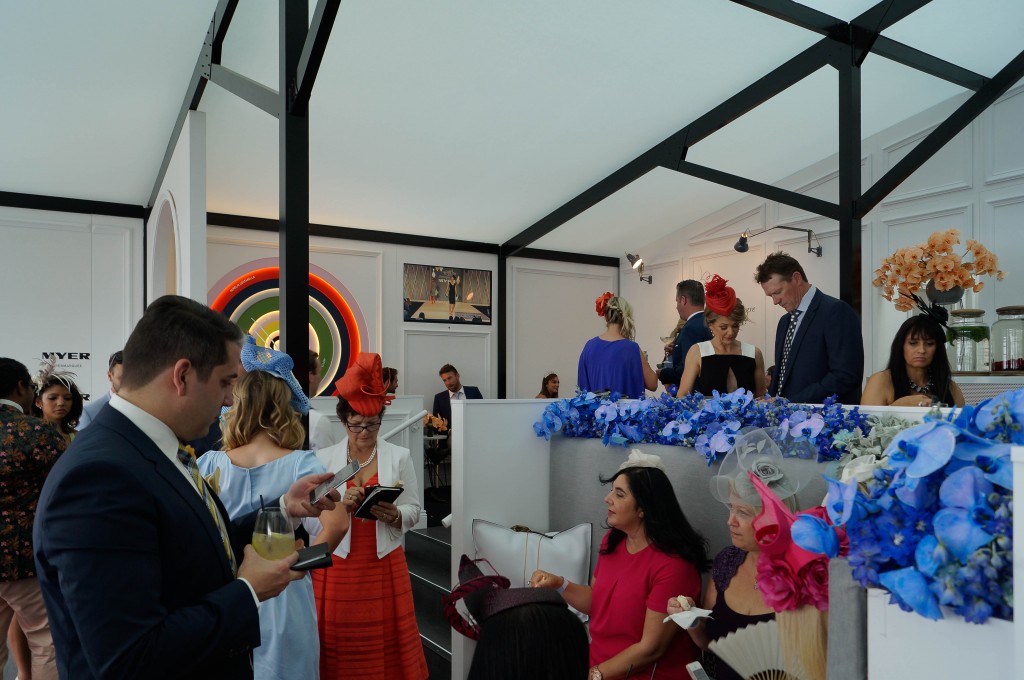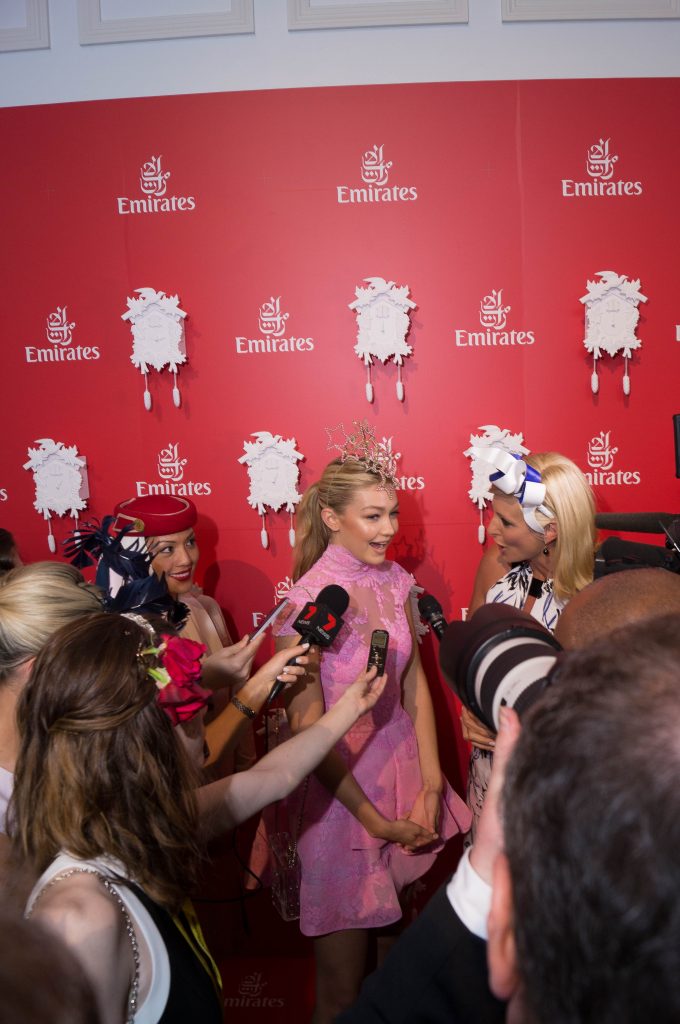 The highlights of the Emirates marquee, apart from the spectacular trackside view from the balcony, was a guest appearance from model Gigi Hadid wearing Alex Perry (and a surprise proposal for controversial personality Gabi Grecko). The German themed marquee was one of the most covetable spots to see the main race, with many racegoers happy to queue to gain entry.