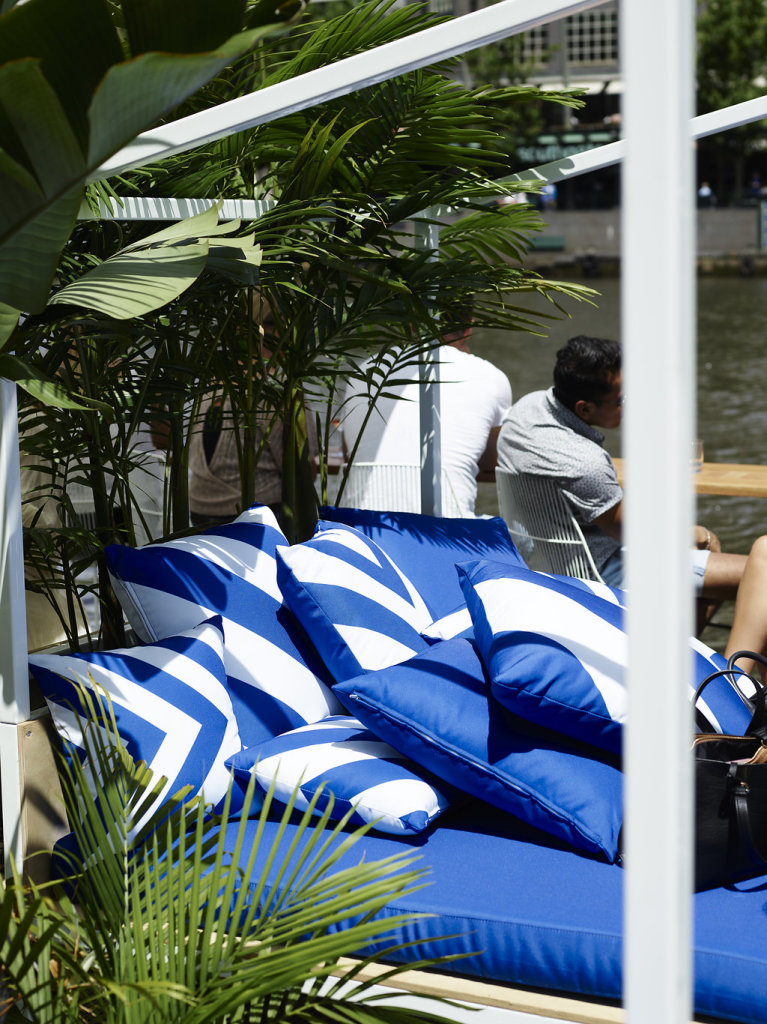 The floating beach club boasts laid back vibes of the Amalfi Coast, a number of bars and an imported wood-fire pizza oven, and for the big night, Executive Chef Nick Bennett will be taking you on a Mediterranean culinary adventure where chefs will shuck pacific and rock oysters at the bar, and roving canapés circulate the deck including Prosciutto & Melon, Nduja Zeppole, Whipped Ricotta & Yarra Valley Salmon Roe, Fritos Misto & Lemon Aioli.