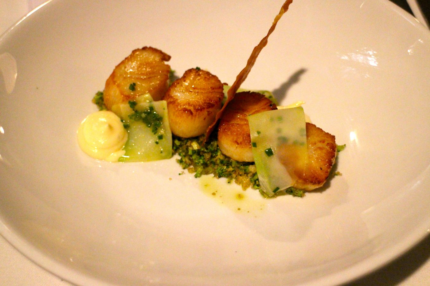 The thing I loved about the Caramelised scallops was how it was matched with the broccoli pangragattato, giving the dish texture from the crunch of the pangragattato and a burst of spring colour from the broccoli. It’s not an immediate flavour combination but the subtle broccoli flavour melded with the sweet flavour of the scallops and the acidity of the citrus aioli. The saltiness of the prosciutto added extra depth.