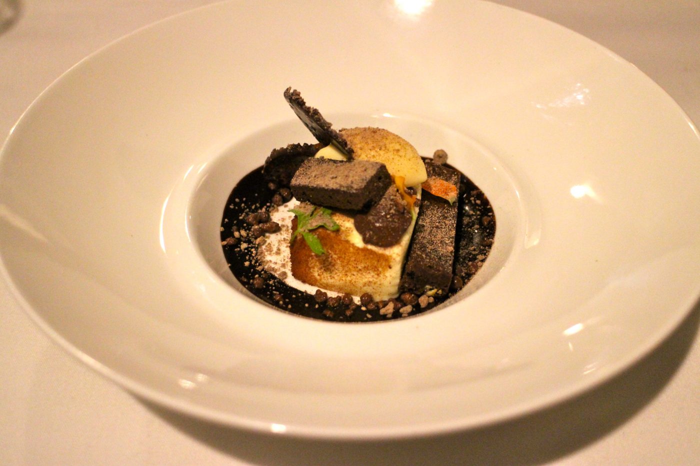 By the end of this dish, it was hard to think about dessert but upon seeing the menu we figured there might be just a little bit of space left to sample two exquisite sweets. The White chocolate cheesecake, brownie and nocello gelato was our first pick and we were so glad we did. A deliciously tasting dessert, with a popping surprise to it.