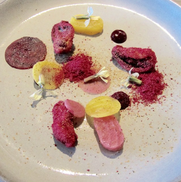 This was followed by the Smoked mussels with variations of beetroot – powdered, purée and slice. The beauty of this dish was not only in taste but also the colours on the dish. The brightness of the beetroot was spread across the plate in different forms. The powdered beetroot and gel and slices all creates different textures which were delightful to eat.