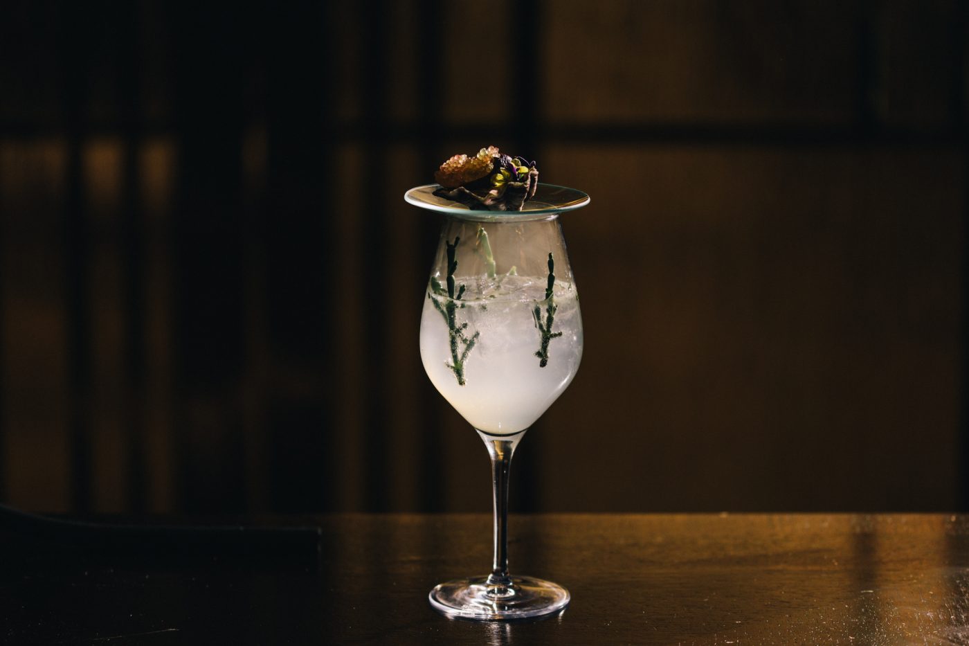 Guests are recommended to start with the Green Ant Martini (Australian Green Ant Gin, Salt Bush, Lemon Myrtle aromatics and Green Ants) or Neap Tide (home- made finger lime sugar syrup, Ironbark distillery wattleseed gin, a splash of Australian sparkling wine, paperbark smoke, a garnish of Sydney rock oyster, fresh finger lime and violet) which includes some of Australia’s most unique flora and fauna such as sea asparagus and paperbark smoke.