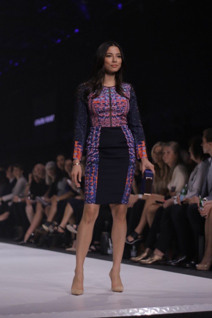 Femininity was pushed aside to make way for a collection of men’s streetwear by Calibre. Featuring a palette consisting of navys, browns and forest greens, our old faithful “Melbourne black” appears to be taking a back seat as we approach autumn winter- a refreshing change. Nicola Finetti’s winter offering, lead by Montana Cox fresh from Paris Fashion Week, is a celebration of the female form. Featuring digital prints and a splattering of colour blocking, the collection is form fitting with a throwback to a slightly vintage silhouette- both feminine and highly structured all at once.