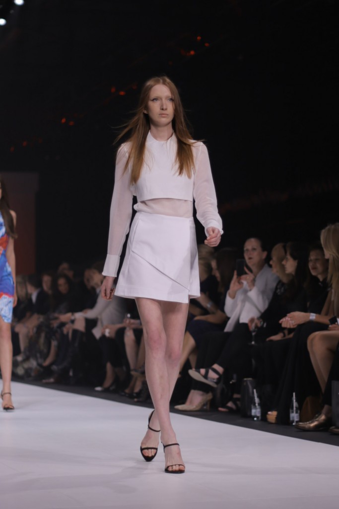 Ginger and Smart’s autumn collection features bright prints on black bases, enabling the wearer to work back each piece with the solid basics we see as our winter wardrobe comfort zone. The jewel toned metallic of Ginger and Smart’s collection were a brilliant contrast to the minimalism of Christopher Esber’s collection. In black, white and navy, Esber’s line of mesh spliced cap sleeved dresses are versatile and sleek, each with a point of difference.