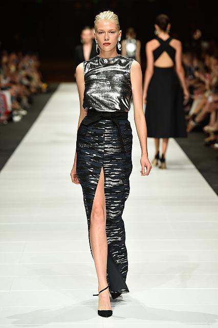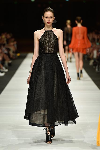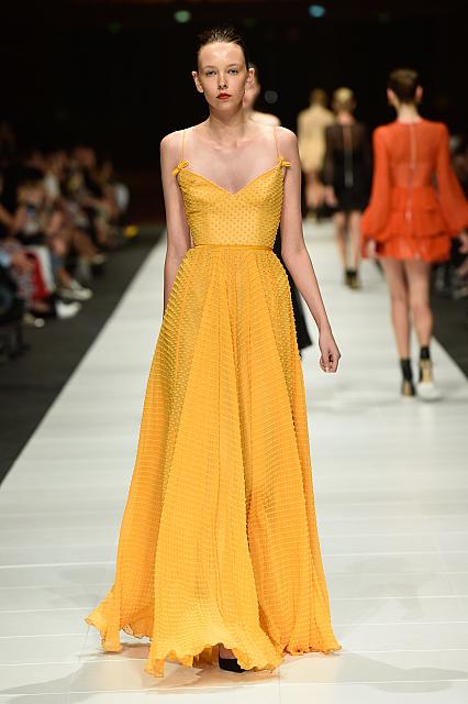 Opening the show, Alex Perry’s collection was full of citrus hues, with sexy cut outs and show stopping exaggerated sleeves.