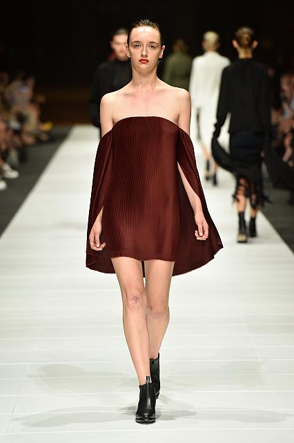 Ahead of his grand showcase, Dion Lee showed is technical genius through pleats, inimitable construction and rock chic sherling jackets.