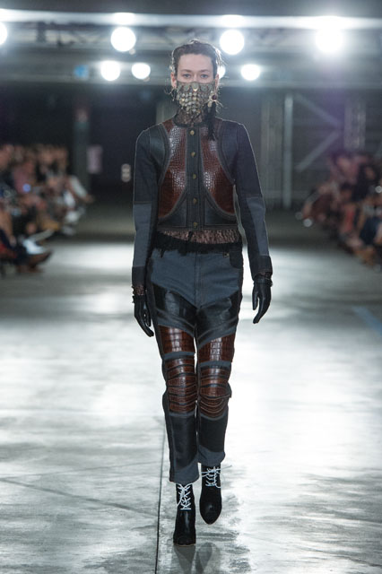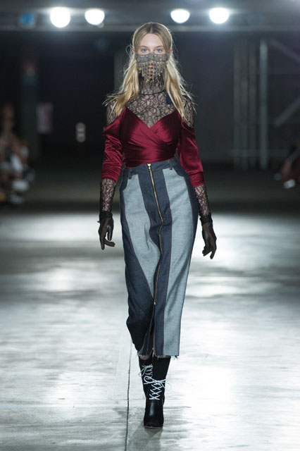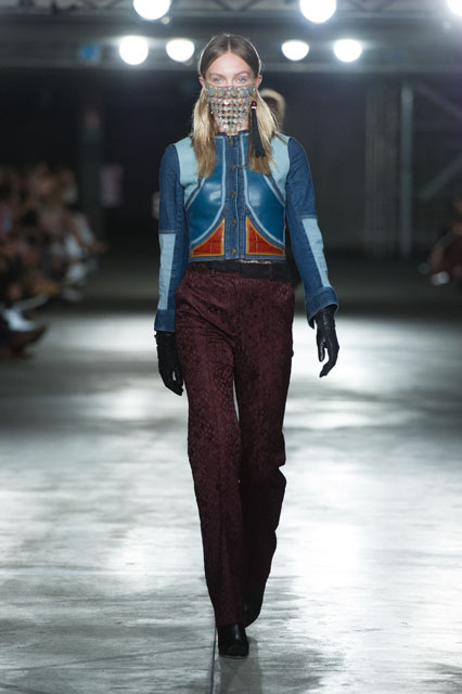Eugénie’s beautifully tailored pieces featured military inspired outerwear and a strong attention to detail. With a focus on denim, textured leather and hints of lace, Eugénie’s collection was a distinctly masculine take on womenswear.