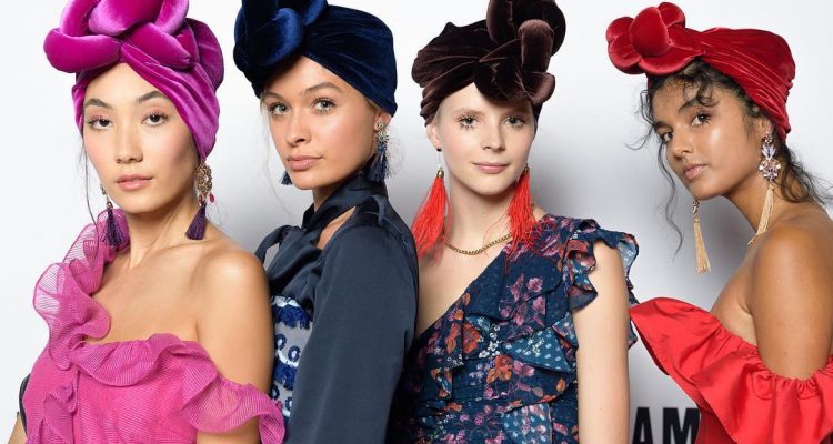 Soft pastels in blush, baby blue and lilac appear to be repeating tones on this runway. We Are Kindred’s looks were feminine with a touch of bohemia – softs laces paired over structured silks with rich fabrications, to floaty shoulder and skirt embellishments with gold bespoke prints. Delicate yet modern, these runway looks were beautifully accessorized with intricate hanging earrings, structured straw bags filled with baby’s breath arrangements and straw hats with draping satin bows.