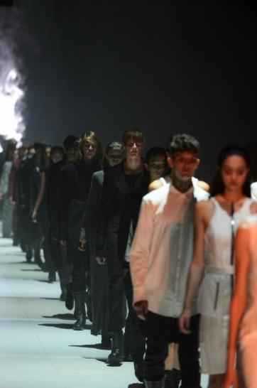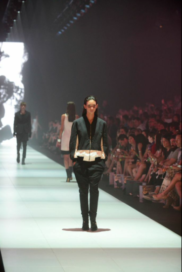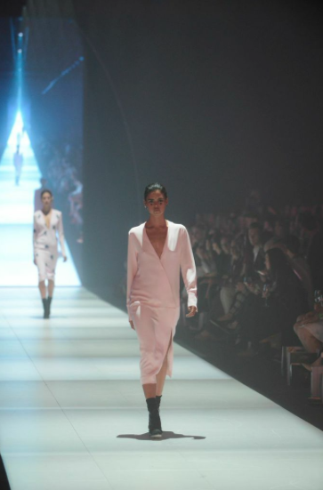 Opening the show with a bang, Strateas.Carlucci showed what they’ve been up to since winning the prestigious design award last year (which, is, by the way, deliciously luxe layering). White on white silks were toughened up with leathers and slick suiting.