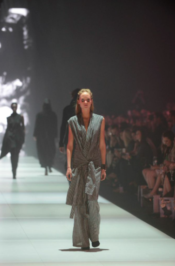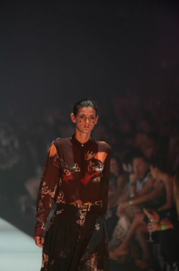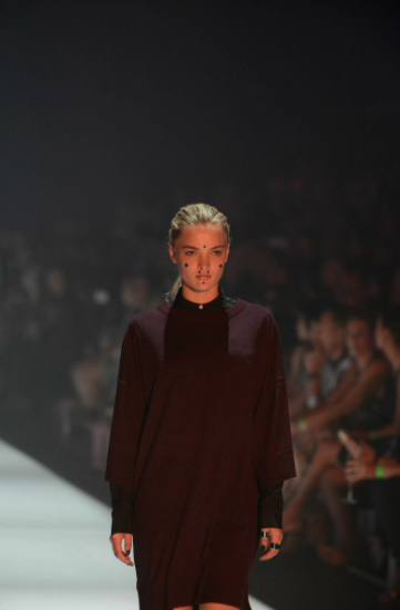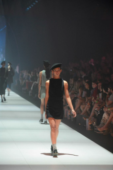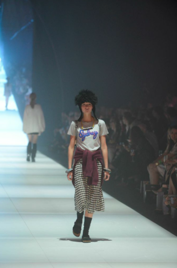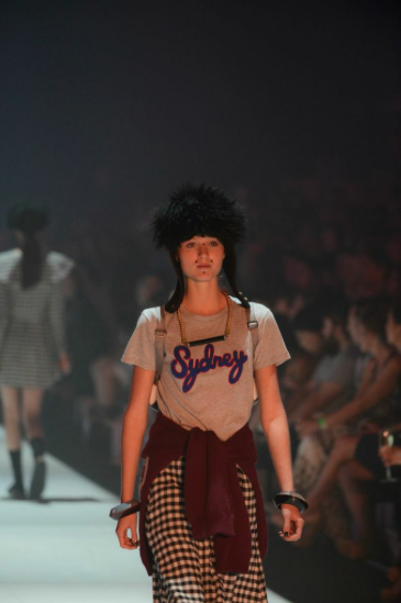 Celeste Tesoriero showed Kath and Kim couture, with Australiana decals being transported into high fashion silhouettes. Our favourite look? The tongue-in-cheek tourist look, complete with ‘Sydney’ tee.’