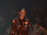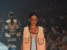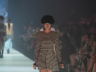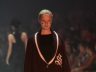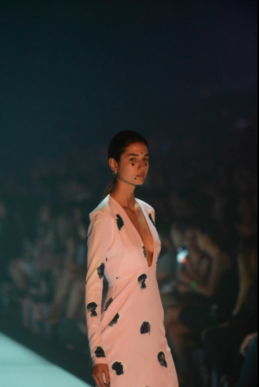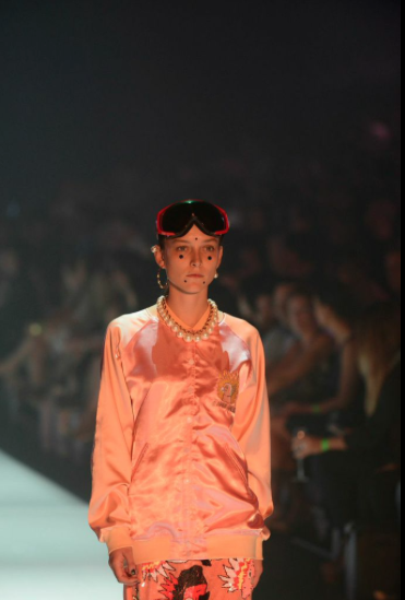 Emma Mulholland also got the Australiana memo, but instead of our national identity, she was inspired by a national icon – Home and Away‘s Alf Stewart and his immortal catch phrase, ‘flamin’ galah!’. Pink leather and embroidered sweaters, and a showstopping fluffy pink suit were standouts in the collection, and a wink to Dame Edna by way of glitzy sunnies was a cute addition.