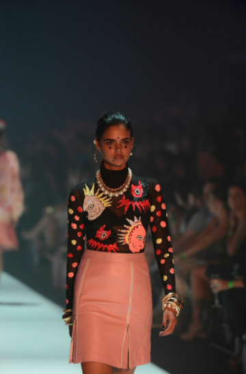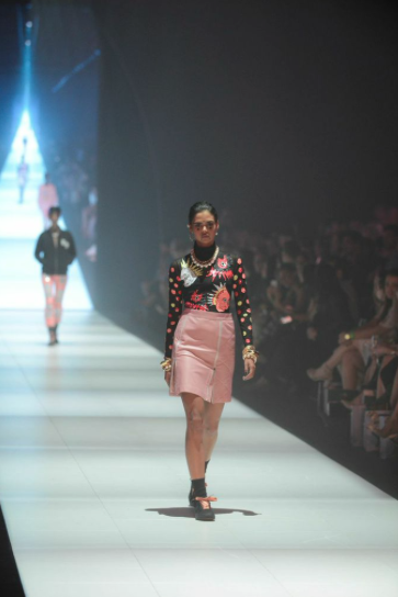 Salasai was punk-meets-preppy, with traditional letterman sweaters exaggerated and toughened up with mesh separates and slogan tees. The stand out? The printed and raw edge shirt and skirt combo – exactly what the downtown Blair Waldorf would be seen it.