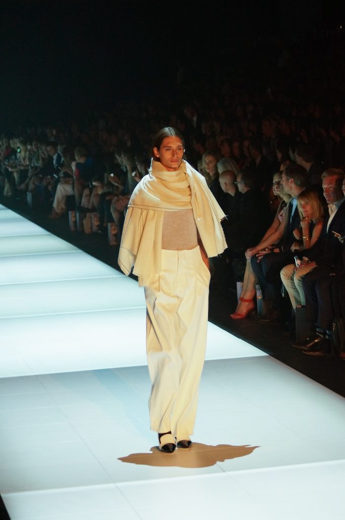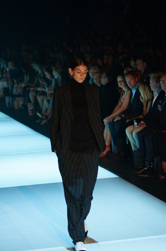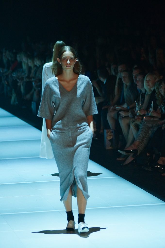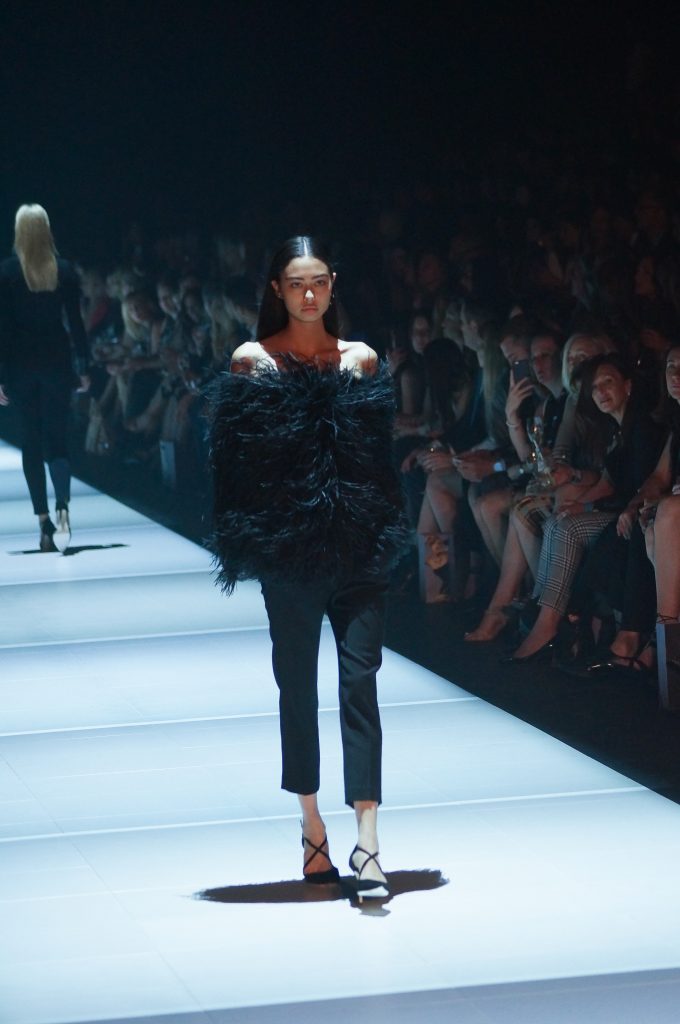 Versatile separates were the order of the season for Bassike, staying true to their tried, tested and widely lauded aesthetic. Variations on neutrals worked seamlessly together, from tailored pants, fine rib knits, to a scarf draped nonchalantly as a shawl. Each piece, while seemingly simple, featured intricate detail on further inspection- a classic knit was given an update thanks to an angular neckline, and a charcoal suit with a subtle pinstripe became the office wear must-have of the season.