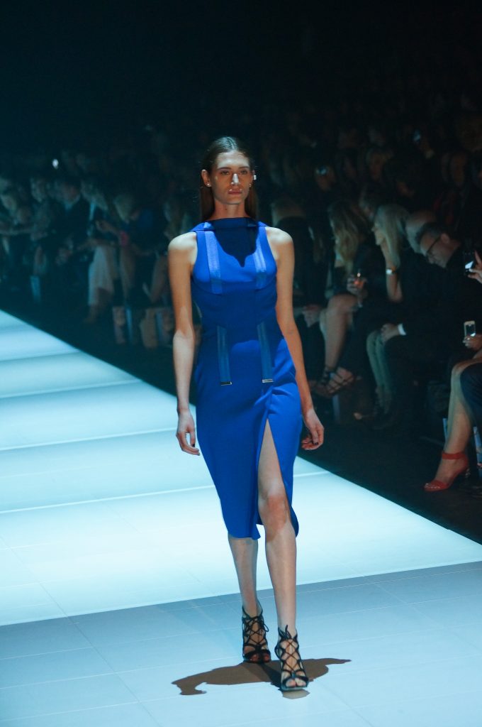 Australian design heavyweight Dion Lee closed proceedings with a collection of electric blue pieces. Sex appeal was at an all time high, with exposed backs and plunging necklines taking centre stage, given a classic Dion Lee point of intricacy with draping and harness detailing.