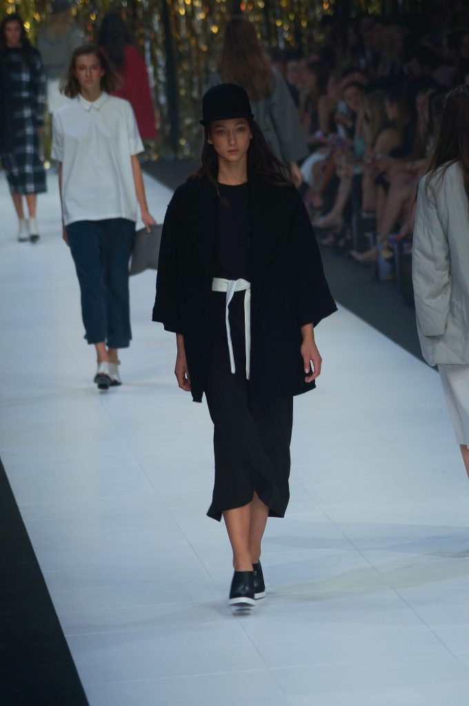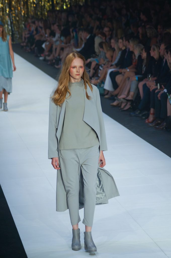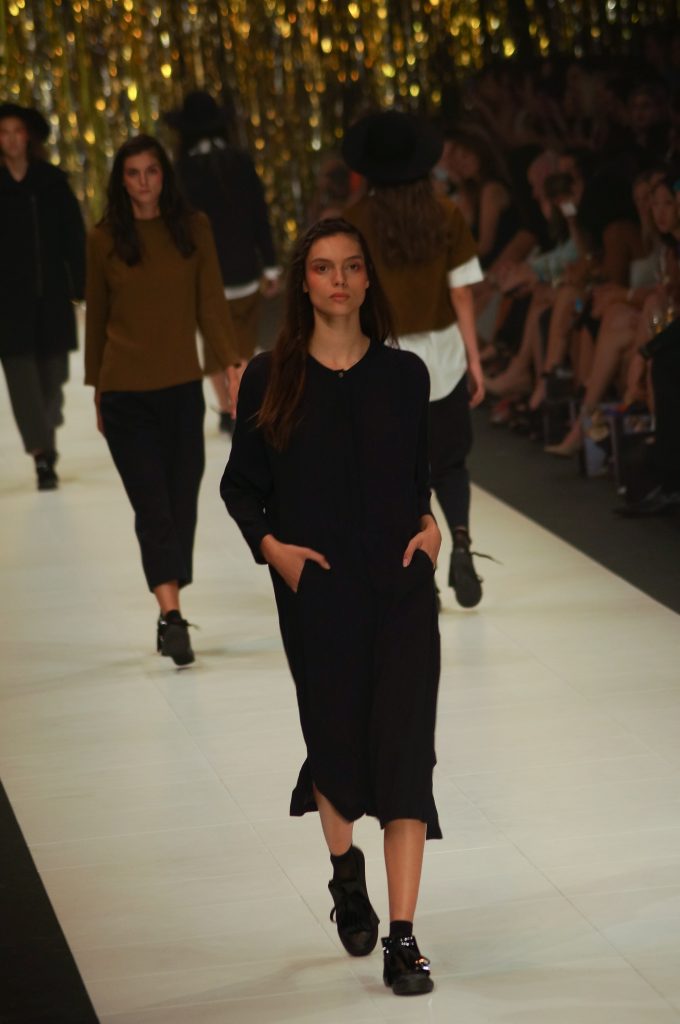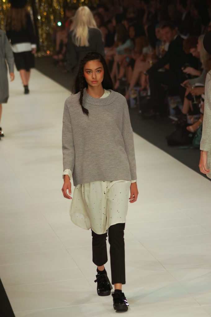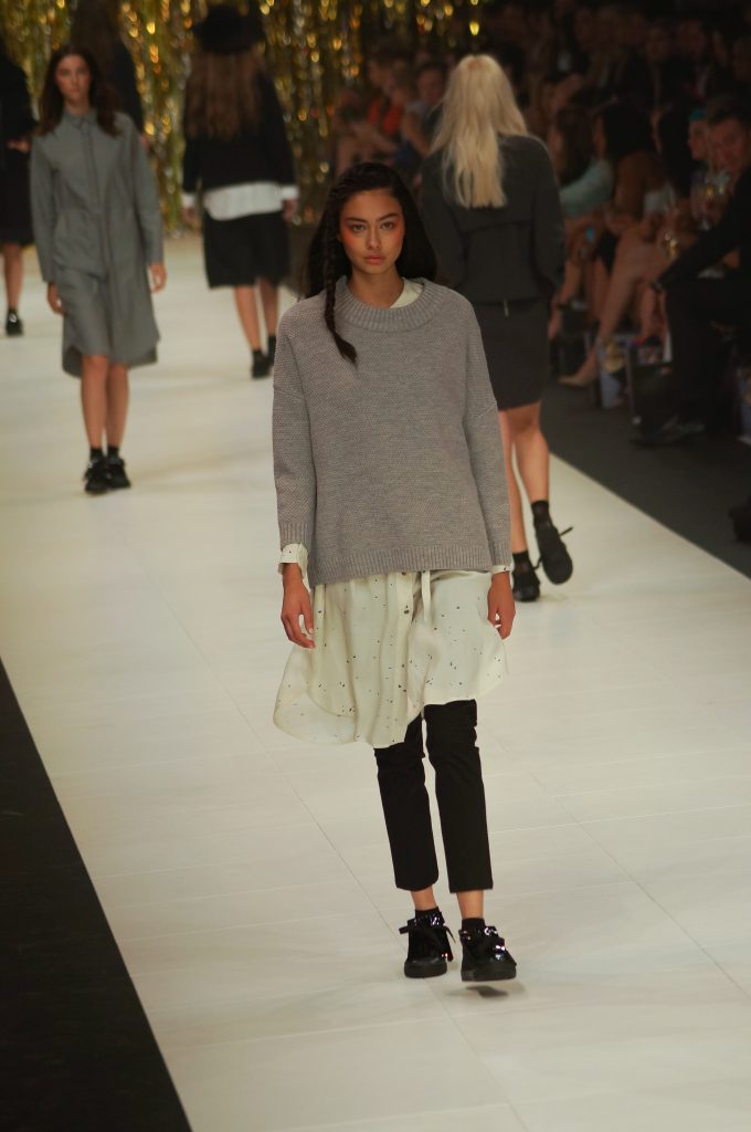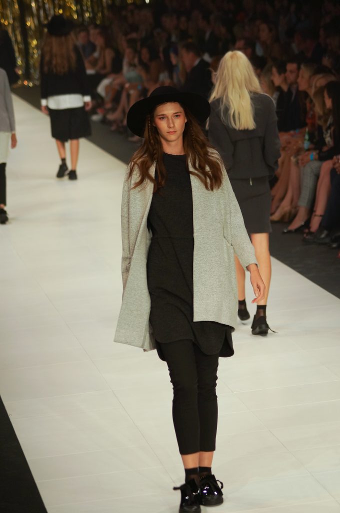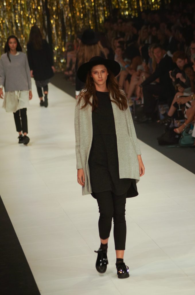 Alpha60 spoke to the Melbourne’s fashionista’s aversion to colour, showing oversized black dresses, luxe grey outerwear and all around neutral, voluminous pieces that translate from the runway to Swanston Street.