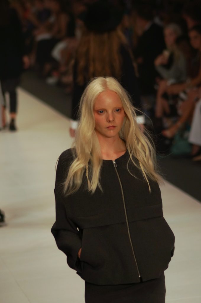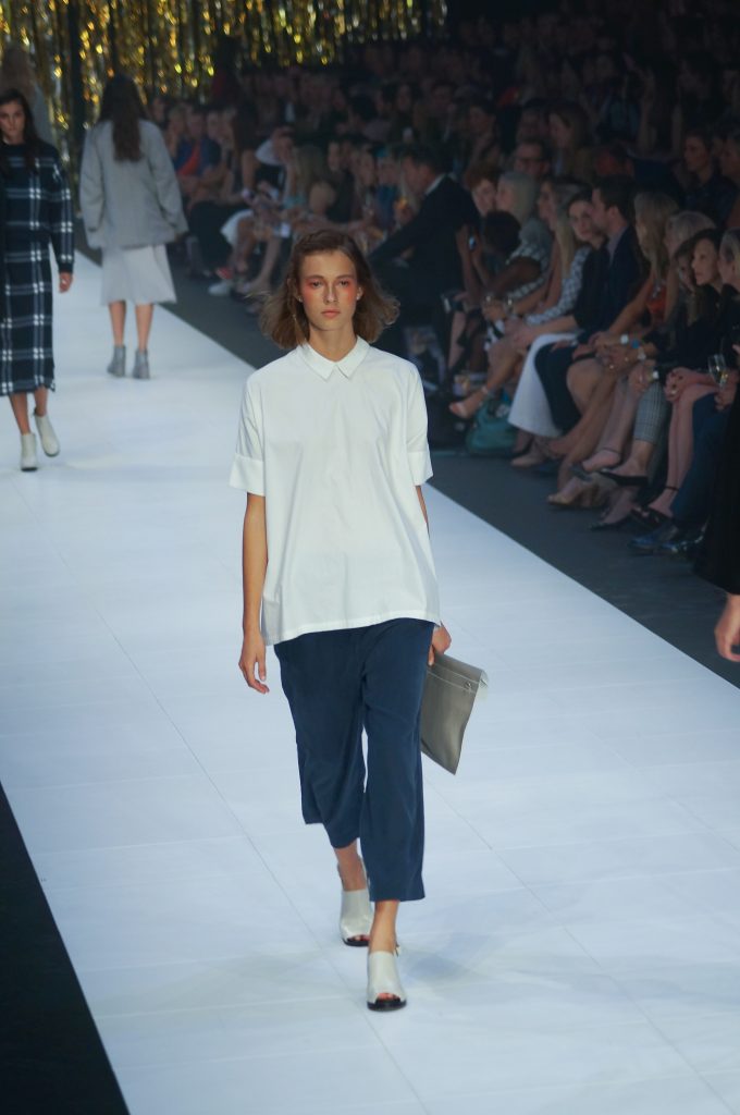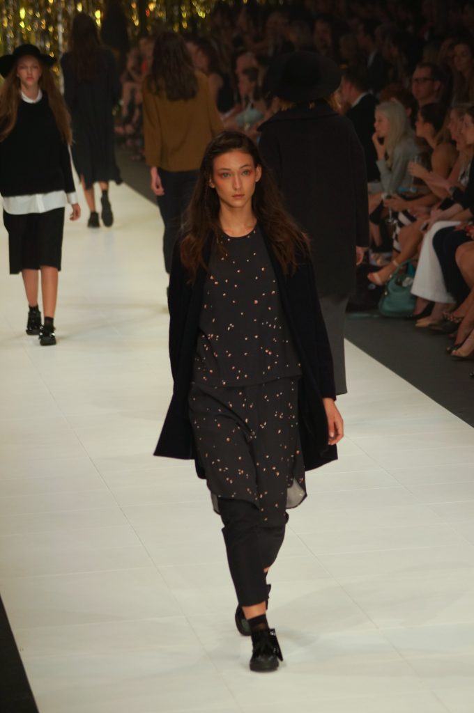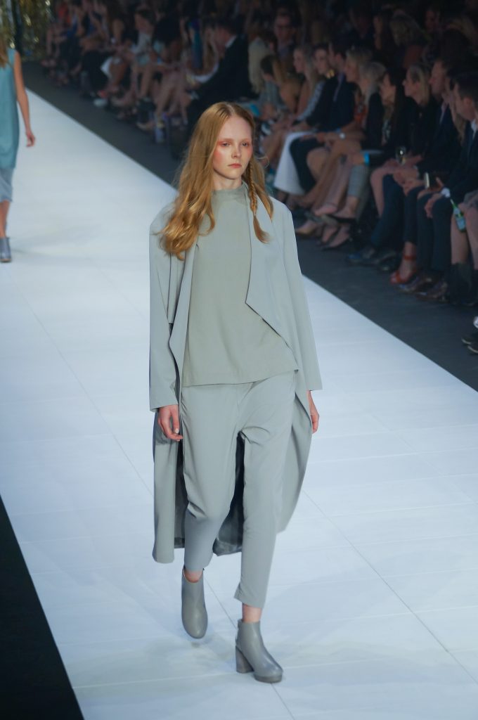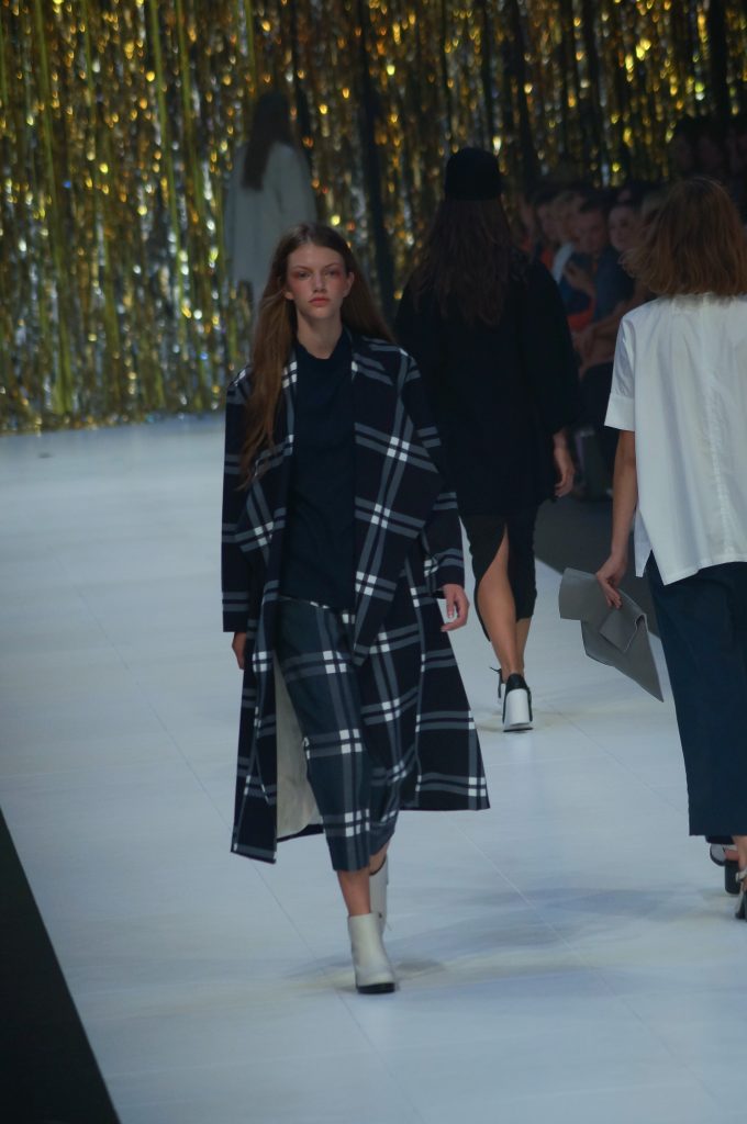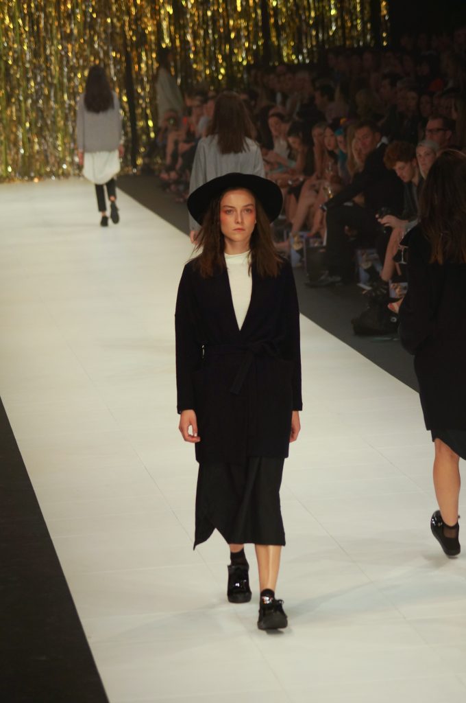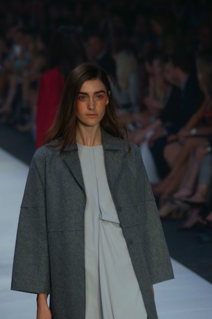 Alpha60 spoke to the Melbourne’s fashionista’s aversion to colour, showing oversized black dresses, luxe grey outerwear and all around neutral, voluminous pieces that translate from the runway to Swanston Street.