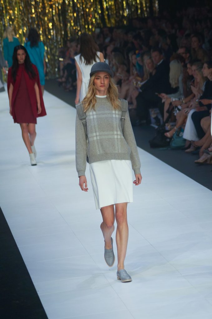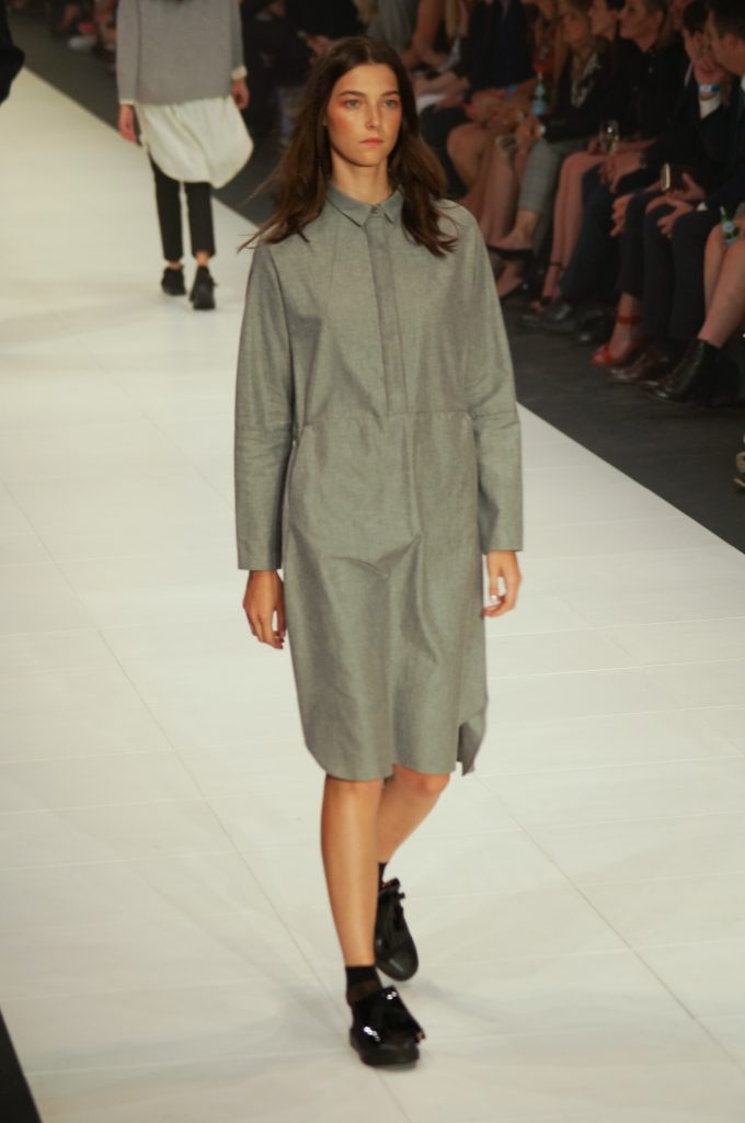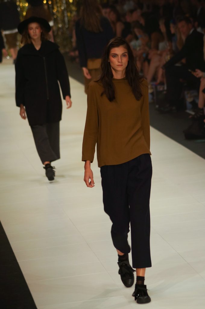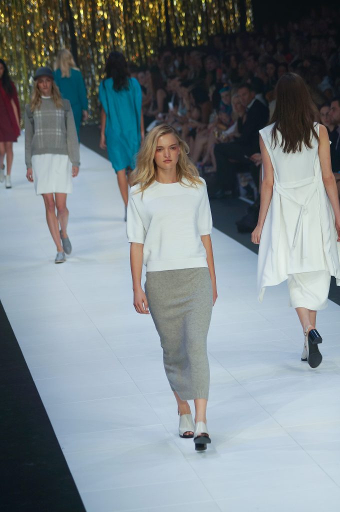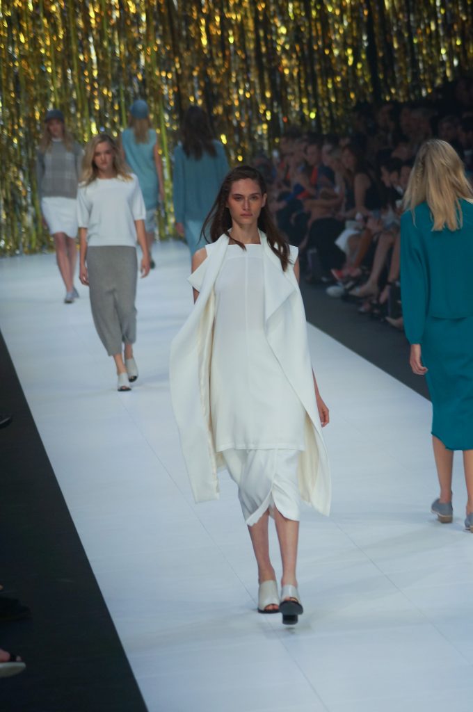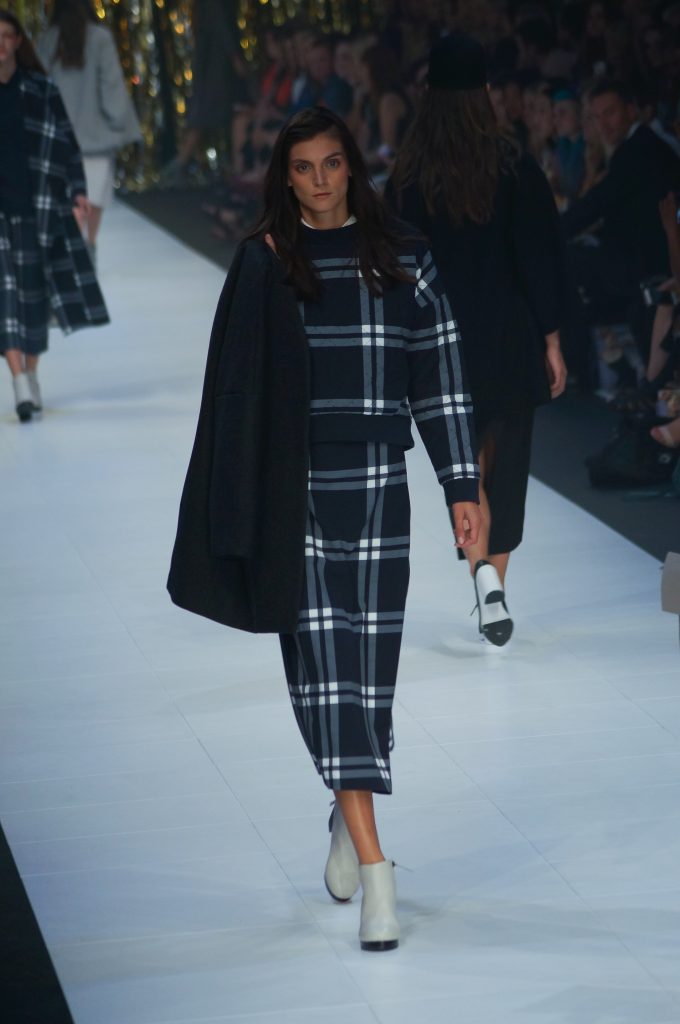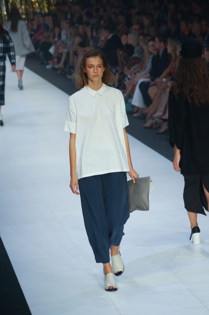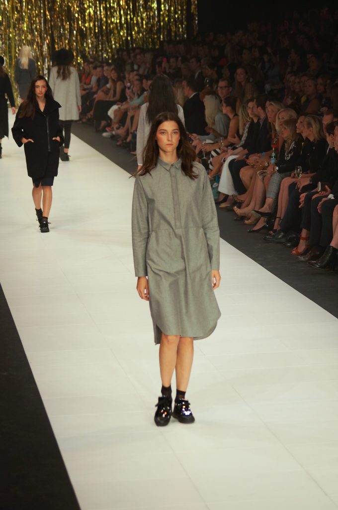 Alpha60 spoke to the Melbourne’s fashionista’s aversion to colour, showing oversized black dresses, luxe grey outerwear and all around neutral, voluminous pieces that translate from the runway to Swanston Street.