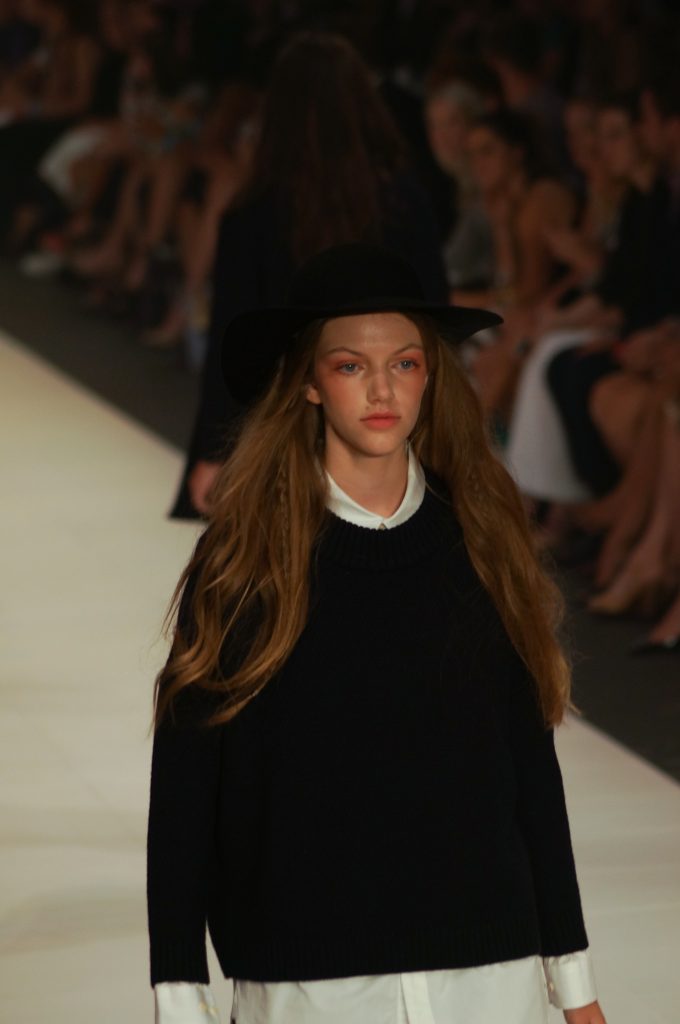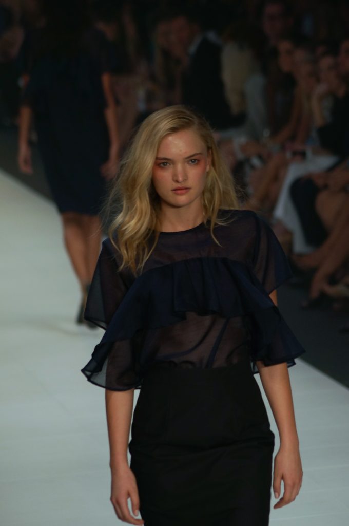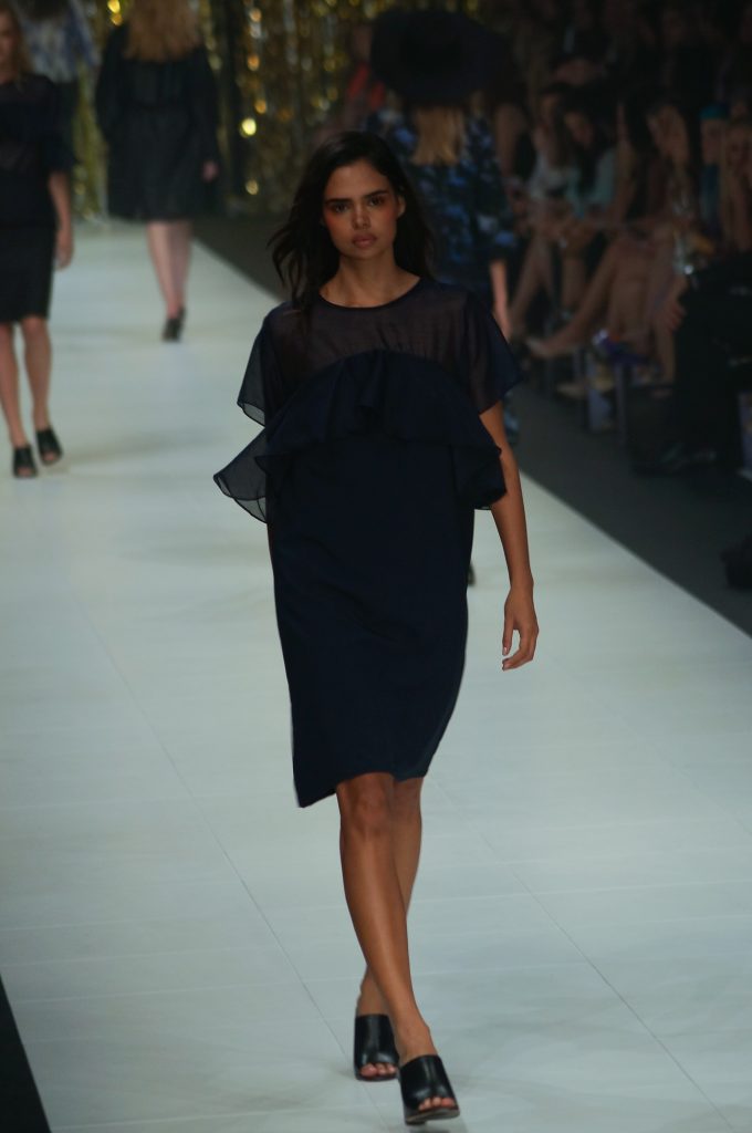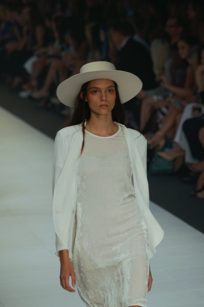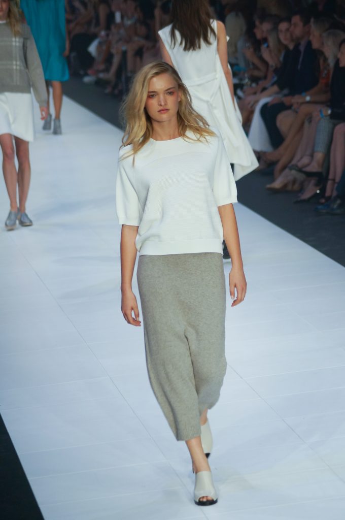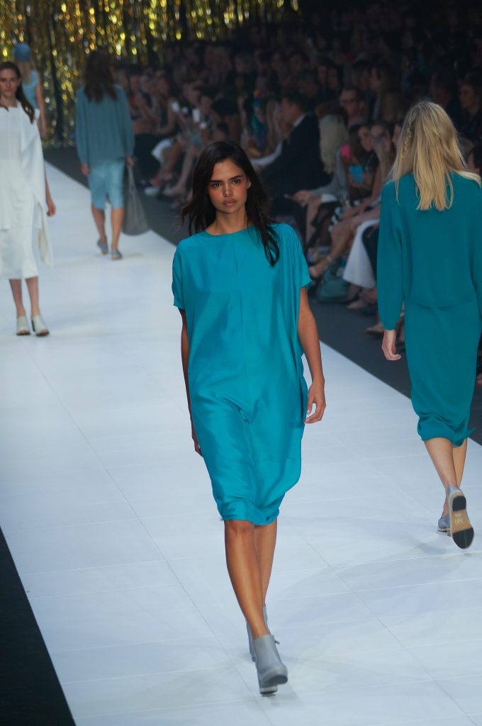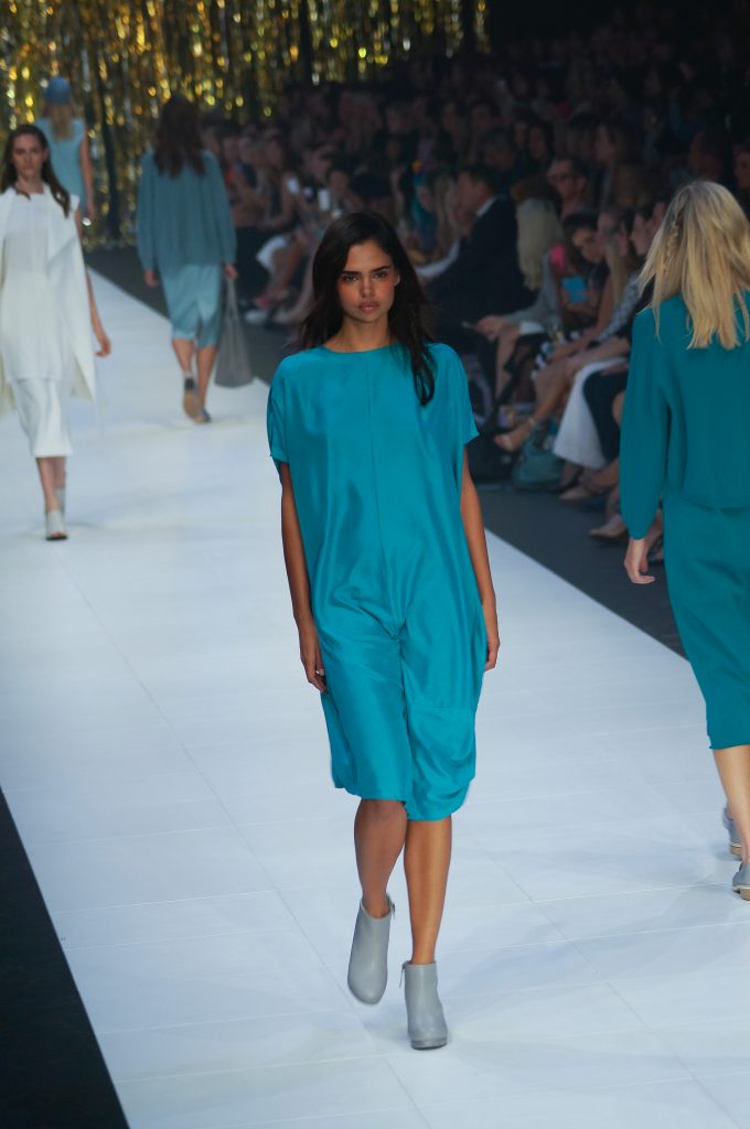 Alpha60 spoke to the Melbourne’s fashionista’s aversion to colour, showing oversized black dresses, luxe grey outerwear and all around neutral, voluminous pieces that translate from the runway to Swanston Street.