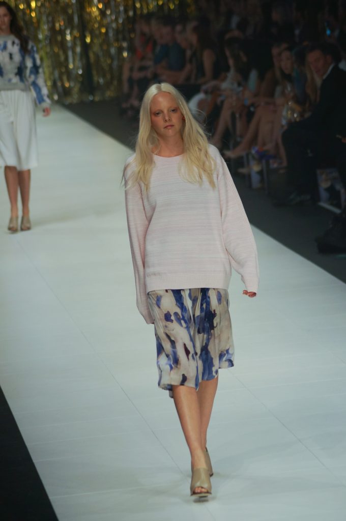 Gorman and their hook up with Miranda Skoczek, with the artist collaborating with the brand created an artistic meeting of the minds, with the already-print loving label moving into a grown up, arty, fund and bold collection. Light pink knits printed culottes, candy coated leather and separates were heroes of the collection, and are definitely on the wish list of many fashion lovers in the crowd.