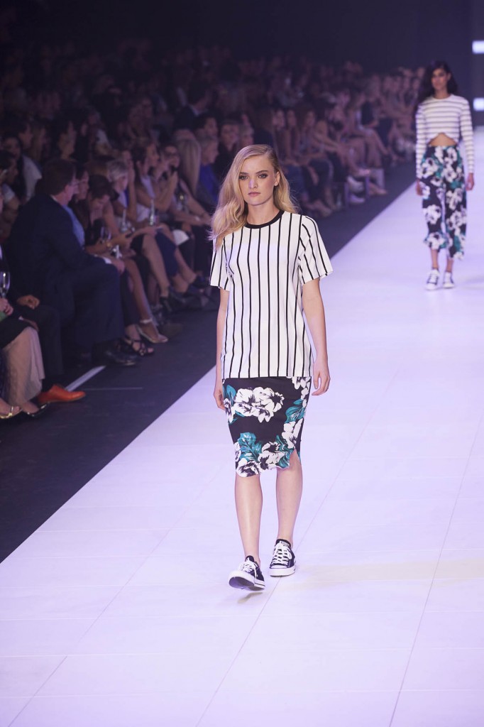 The Fifth took a more polished approach to sports luxe, with crisp whites complemented with bold primary colours, before segueing into print clashed separates. The relaxed shapes were juxtaposed with the polished prints, showing that fashion can be stylish and comfortable. Perfect for the girl on the go this winter.