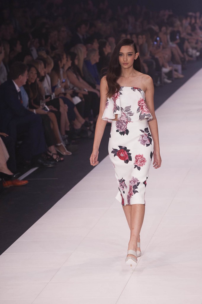 Opening the show with a more muted colour palate, Shona Joy showed new takes on her famed silhouettes – midi skirts and dresses with leather detailing, oversize knit dresses, and separates that show just a little bit of skin. The new take on a leopard print was a highlight, as were the luxe metallic halter dresses.