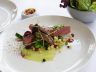 The Lavender-cured duck breast, duck parfait with raw vegetable salad and flowers is a delightful way to incorporate the lush surrounds into your meal. For mains, Green Hills Natural Beef eye fillet (served medium rare), baby onions, peat whisky mustard, asparagus and beef jus. For vegetarians, the Cauliflower, black barley, buttermilk, celeriac with sumac is a delightful option.