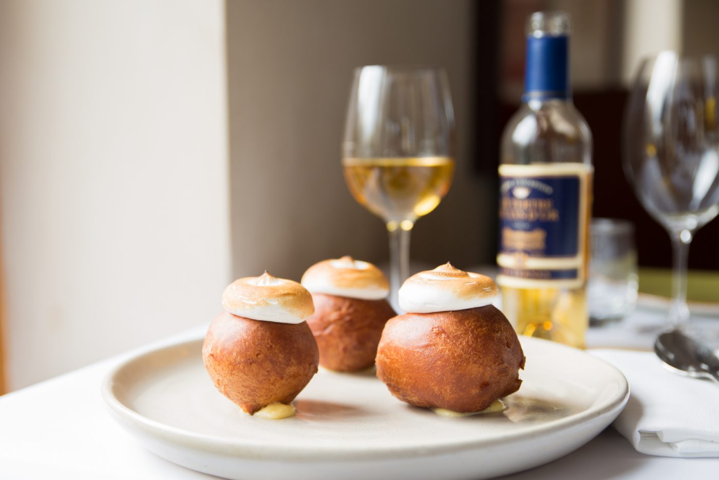 Menu highlights include Jerusalem artichoke soup, artichoke crisp, truffle, Pão de Queijo; Seared Duck breast, roasted caulfilower with a soubise jus and Lemon Meringue beignets.