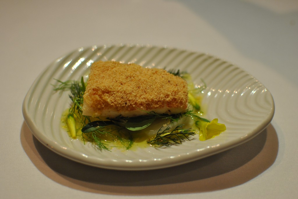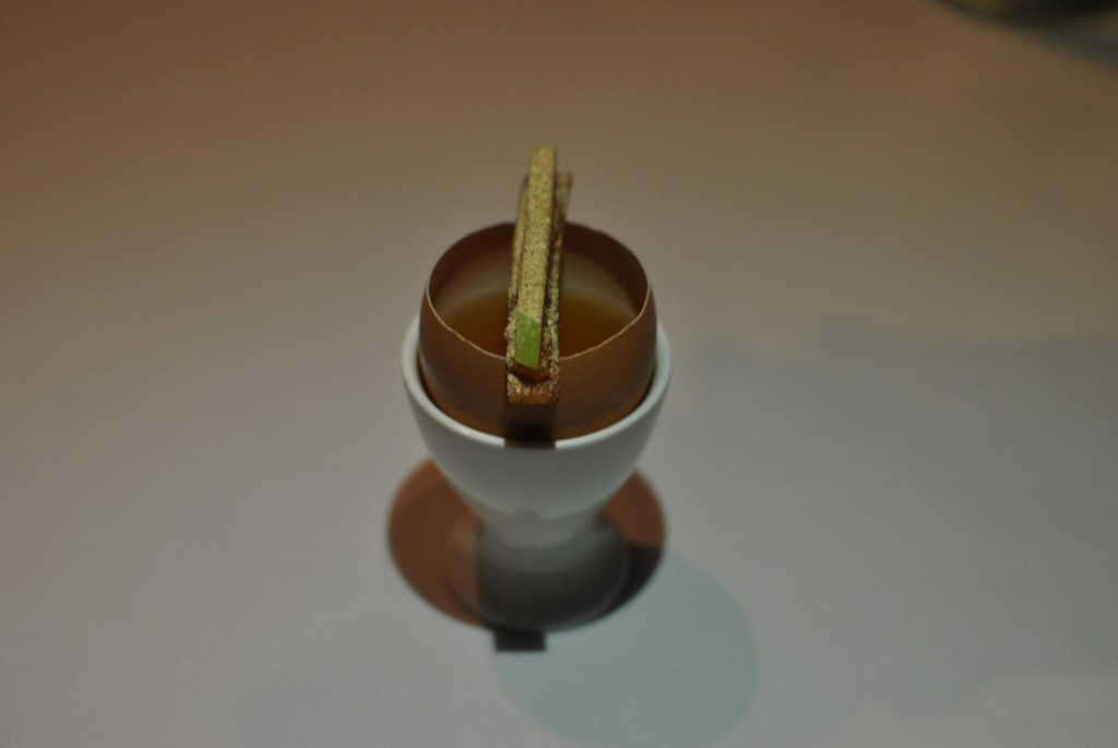 Tarlington is clever in the way he integrates the restaurant’s farm focus into the menu. Goats curd covered chicken is served with poached bird seed, a play on what chickens eat e.g. wheat, rye, popped corn, pine nuts. The Bacon and egg broth entree sprinkled with mushroom dust is a unique play on farmhouse breakfast.