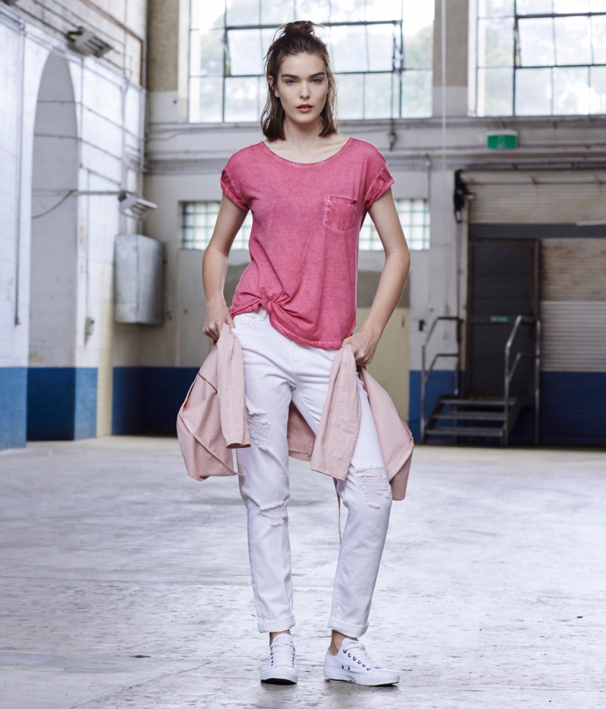 This season JAG womenswear is inspired by weekends spent relaxing in the park, featuring Melbourne maps, vintage motifs and quirky statement tees. Easy day dresses and cosy knits are paired back with a great range of statement jackets in the season’s latest shapes. The super soft leather Biker Jackets in black and tea rose, the Hooded Parka and the Four Pocket Parka are must haves for trans-seasonal dressing.